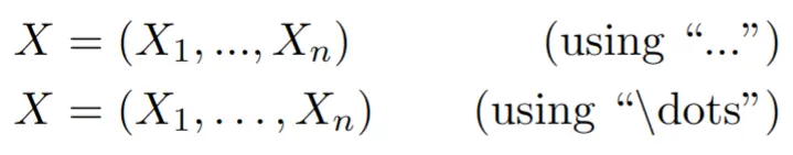 P(X) = \int xyz dxNow we can really see that the quantities are running into each other, and it becomes hard to interpret. Instead, we can add math-mode spacing, summarized in the following table: