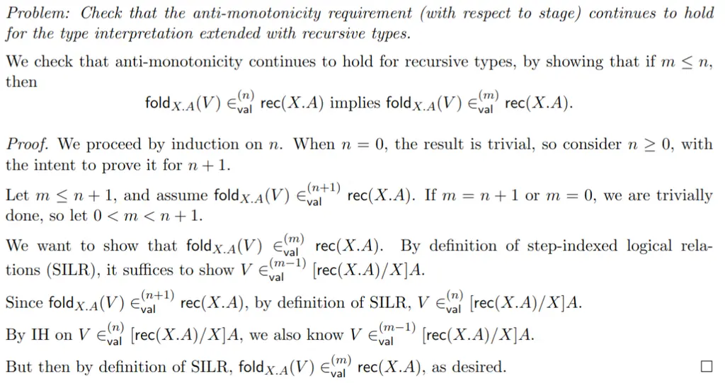 We check that anti-monotonicity continues to hold for recursive types,