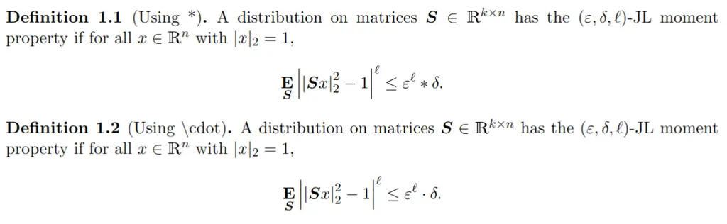 $$\min_x \lvert \bA x - b \rvert_2^2$$Macros can also take arguments to be substituted within the definition. This is done by adding a [n] argument after your command name, where n is the number of arguments that it should take. You can then reference the positional arguments using #1, #2, and so on. Here, we create a \dotprod macro that takes two arguments: