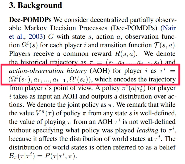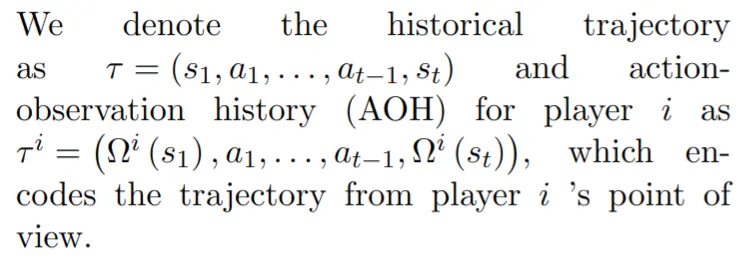 ${ \tau^i=\left(\Omega^i\left(s_1\right), a_1, \ldots, a_{t-1}, \Omega^i\left(s_t\right)\right) }$,